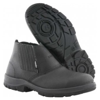 Calçado de segurança tipo botina com fechamento em elástico lateral, confeccionado em couro curtido ao cromo. Possui palmilha de montagem em material sintético fixada pelo sistema strobel e solado de poliuretano bidensidade, que proporciona maior conforto. Conta com biqueira de composite, um composto formado por fibra de carbono, vidro e poliéster especial, sem componentes metálicos, um material que, aparentemente, lembra o plástico. Resistente contra impacto e ao óleo combustível, mais leve que biqueira de aço.