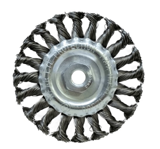 Escova circular de aço carbono com rosca M14, ideal para remoções de ferrugens, tintas, impregnações em superfícies. Também pode ser utilizada contra oxidações.