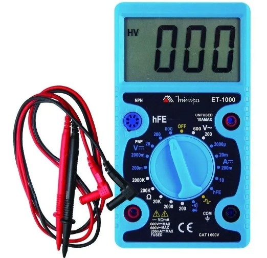 Versátil e funcional, permite realizar medições de tensão AC/DC, corrente, resistência e testes diversos, auxiliando no diagnóstico e manutenção de circuitos elétricos e eletrônicos.