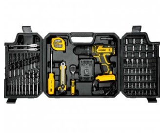 1 Parafusadeira/furadeira a bateria. Acompanha: 1 maleta, 1 bateria de 20 V, 1 fonte de carregamento bivolt automática e 78 acessórios, sendo: 2 brocas chatas para madeira (13 mm e 16 mm), 10 brocas para madeira (3 mm, 3,5 mm, 4 mm, 4,5 mm, 5 mm, 6 mm, 7 mm, 8 mm, 9 mm e 10 mm), 10 brocas em aço rápido (3 mm, 3,5 mm, 4 mm, 4,5 mm, 5 mm, 6 mm, 7 mm, 8 mm, 9 mm e 10 mm), 13 soquetes em aço cromo vanádio encaixe 1/4 (4 mm, 4,5 mm, 5 mm, 5,5 mm, 6 mm, 7 mm, 8 mm, 9 mm, 10 mm, 11 mm, 12 mm, 13 mm e 14 mm), 5 soquetes sextavados magnéticos (6 mm, 8 mm, 10 mm, 12 mm e 13 mm), 1 chave catraca 1/4, 8 bits 25 mm philips (2 peças PH0, 2 peças PH1, 2 peças PH2 e 2 peças PH3), 9 bits 25 mm fenda (2 peças SL 3 mm, 2 peças SL 4 mm, 2 peças SL 5 mm, 2 peças SL 6 mm e 1 peça SL 7 mm), 4 bits 25 mm pozidrive (1 peça PZ0, 1 peça PZ1, 1 peça PZ2 e 1 peça PZ3), 6 bits 25 mm hexalobular (T10, T15, T20, T25, T27 e T40), 5 bits 25 mm allen/hexagonal (H2, H3, H4, H5 e H6), 1 soquete magnético encaixe de 1/4, 1 cabo adaptador encaixe 1/4, 1 bit adaptador, 1 Trena 5 metros e 1 estilete.